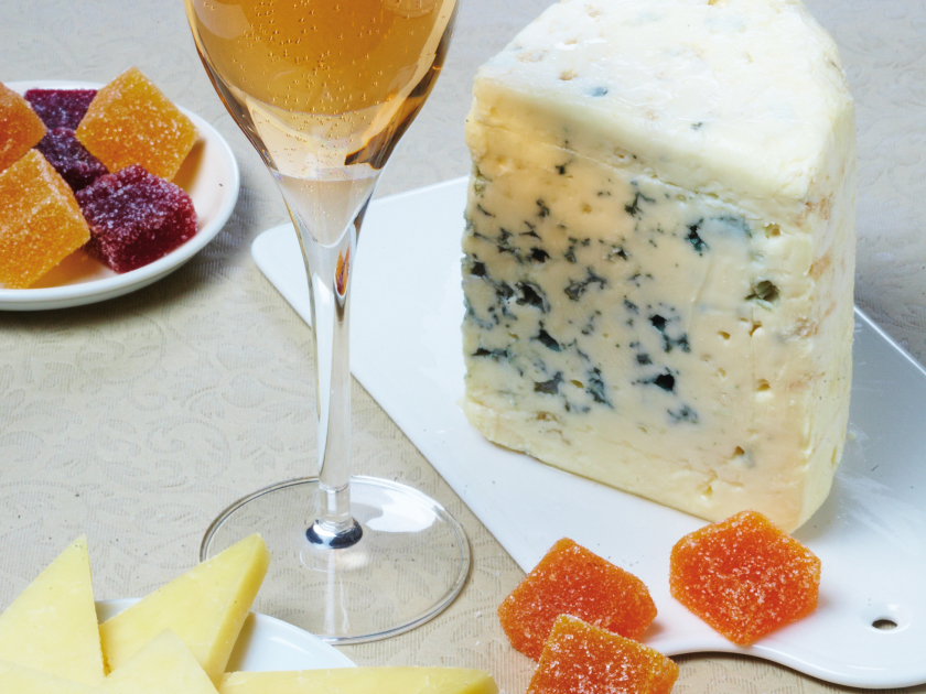 Le Champagne rosé peut paraître un peu “facile” sur les persillés. Cependant, la présence de fruits rouges tant au nez qu’en bouche n’est pas pour déplaire au Roquefort. La pâte caractéristique beurrée, granuleuse, doit se dissoudre en longueur. Le fruit respecte la moisissure et l’ensemble garde jusqu’au bout les deux produits d’une manière distincte et surprenante.