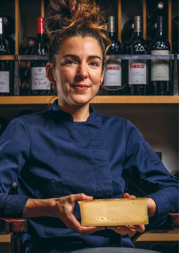 Le goût de manger est arrivé tôt, celui de cuisiner plus tard. Chignon bricolé à la va-vite et allure juvénile, Elsa Marie semble avoir trouvé sa place. Après un long voyage aux antipodes, elle est revenue à Paris, désormais cheffe du restaurant La Vierge. « Un lieu convivial, détendu, abordable et où l’on mange bien, parce que c’est possible », précise-t-elle. Engagée pour une agriculture durable, elle source ses produits avec soin, cuisine le midi des assiettes vives à prix doux, et laisse à son mari, Julian, les tapas et plats à partager du soir. Pour Sweet Cheese, elle a redécouvert l’Abondance, et on ne s’en plaint pas.