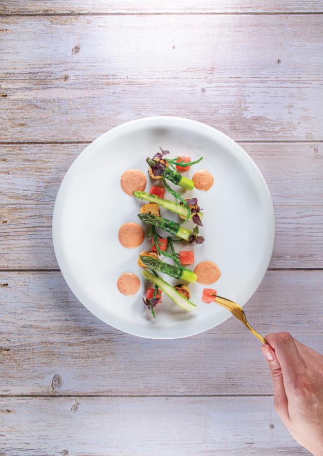 Je suis un cuisiner à la fois traditionnel et créatif. Pour moi, la saveur d’un plat est toujours une priorité, ensuite vient la cohérence, puis l’esthétique visuelle. Lorsque je cuisine, je me concentre à créer des plats délicieux, qui feront plaisir aux clients ! J’ai toujours dans l’idée que les goûts doivent être francs et que mes clients puissent les identifier et que ça leur rappelle un souvenir… Pour l’inspiration, c’est assez simple en fait, je m’interroge sur l’ingrédient qui ira le plus avec un autre. Ensuite lorsque les idées me viennent, je les garde en tête pour les réaliser concrètement plus tard.