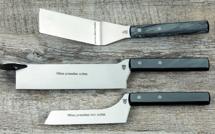 Il est important d’utiliser les couteaux appropriés à la pâte du fromage afin de ne pas mélanger les arômes entre eux. Chaque couteau est étudié pour faire des coupes nettes en fonction de la texture de la pâte et de la forme du fromage.