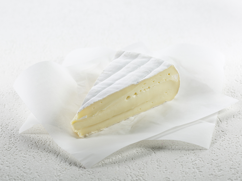 Grand fromage à croûte fleurie, duveteuse et blanche.