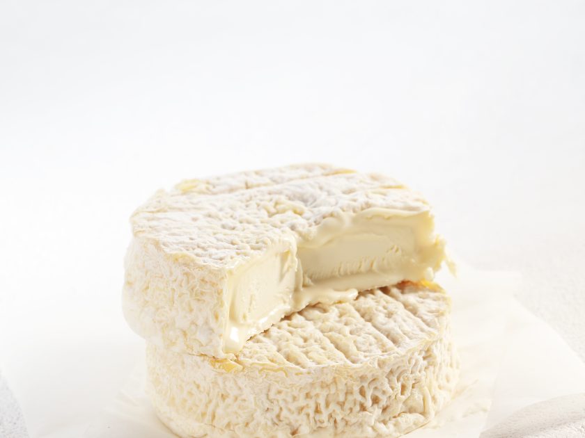 Fromage à croûte naturelle ivoire, légèrement plissée et souple. Sa pâte est lactique